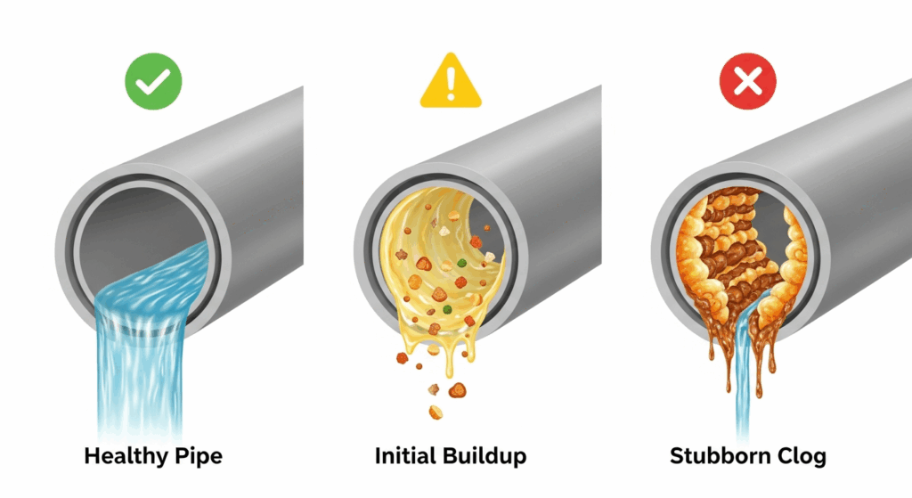 Fats, Oils, and Grease—collectively known as FOG—are the undisputed arch-nemesis of your plumbing. This category includes everything from turkey drippings and bacon fat to butter, cooking oil, and gravy. This sludge coats the interior of the pipes, creating a sticky surface that catches and holds onto other debris, gradually forming a dense, immovable clog.